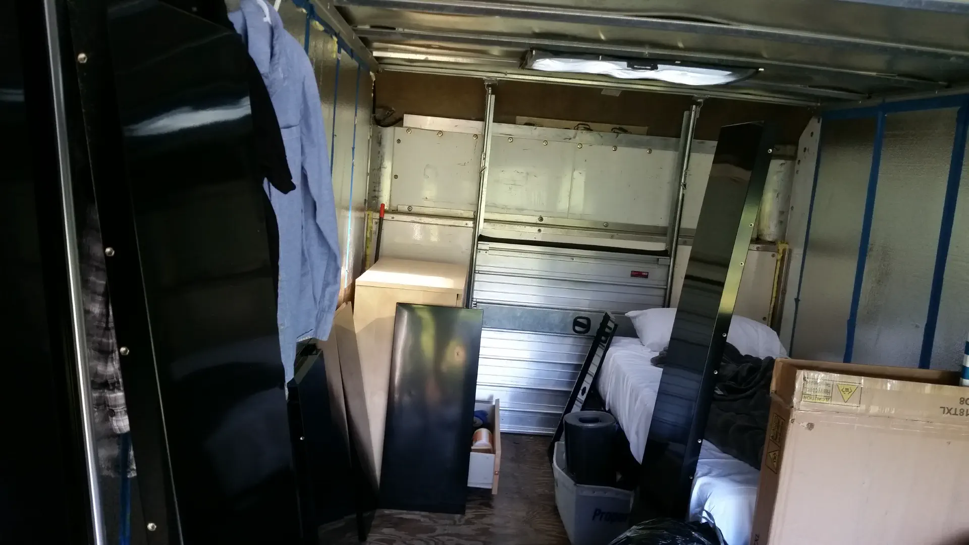 There’s still some space, but it’s certainly not optimal. Plus, that diagram isn’t really telling the whole story. For one, Bed is in pretty rough shape. The springs have lost most of their will to spring, and the box-spring cloth is torn to shreds from being dragged back and forth across the truck half a bajillion times.