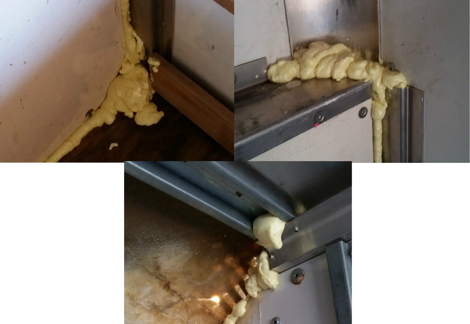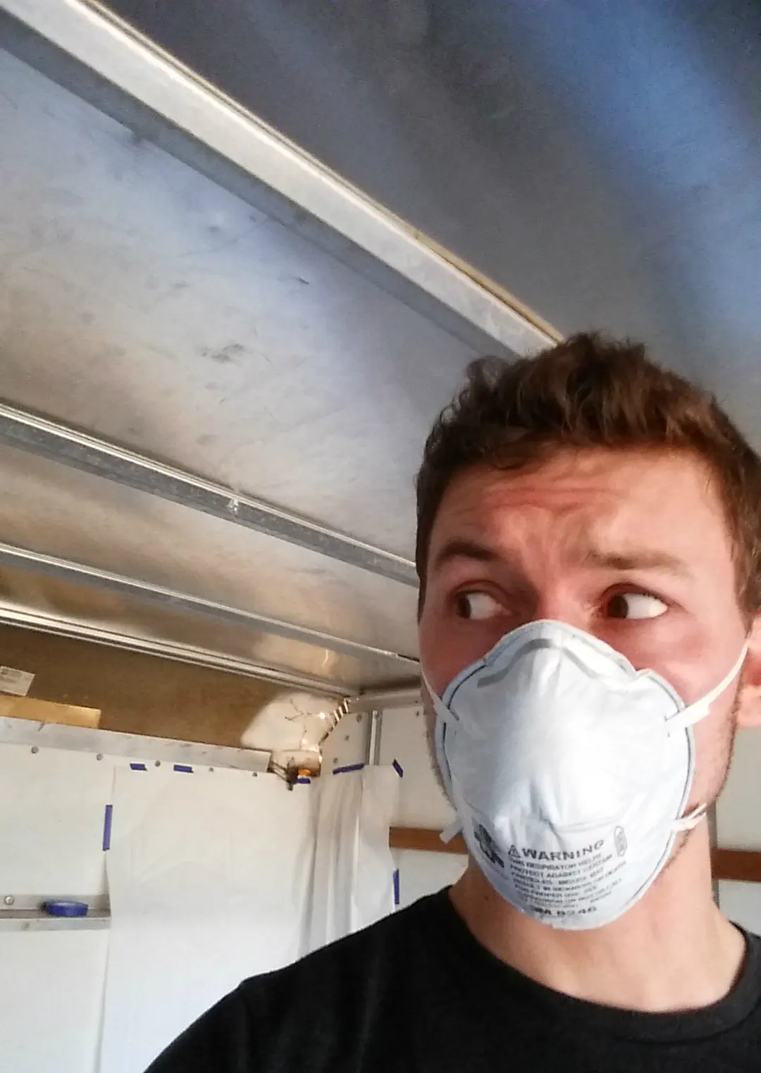 The idea behind Great Stuff® is pretty simple. You shake the can, you spray it into the cracks, it expands a bit, and it provides a little extra insulation. I thought this would be a great addition to the area around The (now defunct) Hole, and just the back of the truck in general, which is a bit drafty. But I forgot to take into account how bad my basic motor skills are, and how much the stuff expands, and I kind of just coated seemingly random bits of the truck in it. It legitimately looks like Shrek had a vicious cold and was sneezing huge mucus-y webs of lumpy sadness everywhere.