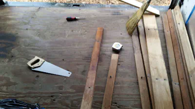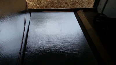 Another hysterical complication (which the borderline-prophetic Nancy had warned me about), is that every time you cut into these foam panels with a switchblade, you leave a trail of little styrofoam beads in its wake. So with each and every slice, all ~46 of them, the truck would essentially become a giant snow globe, and even the gentlest of breezes would spin a snowstorm into existence. Not wanting to litter the outside world with these onslaughts of artificial dandruff, I put a plank of wood across the entrance and swept the tiny nuisances away into a trash bag after every few cuts.