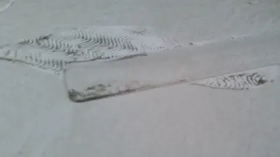 I don’t remember much out of the ordinary from last night. Sounds from cars leaving a nearby concert, maybe some kids hanging around and talking. The strangest thing I heard was a cop talking to someone and asking what they were doing. I don’t know if the person was in a car or not, but the cop asked them for their license. They were slow to respond and seemed confused. I don’t remember much else because I was half asleep, but I’ve never heard of cops hanging around this area, so it’s pretty curious that they were there in the first place. While I was taking the above pictures, I noticed a man standing next to his car maybe 50 feet away. I asked him if he saw anything, but he didn’t speak much English. I showed him the footprints on the truck and motioned to my feet to try to convey what had happened. He showed me the bottom of his shoes (which had a totally different pattern than the marks on the truck) and said he didn’t know anything. Oh, and I checked all of my own shoes to see if the pattern matched, in case I had been sleep-walking or something (couldn’t rule anything out). As expected, no match there either.