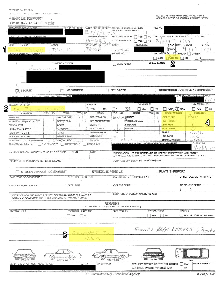 I got the full police report a few days later. It’s covered in scary watermarks that indicate I shouldn’t post it here, so I’ll just grab a few entertaining excerpts: