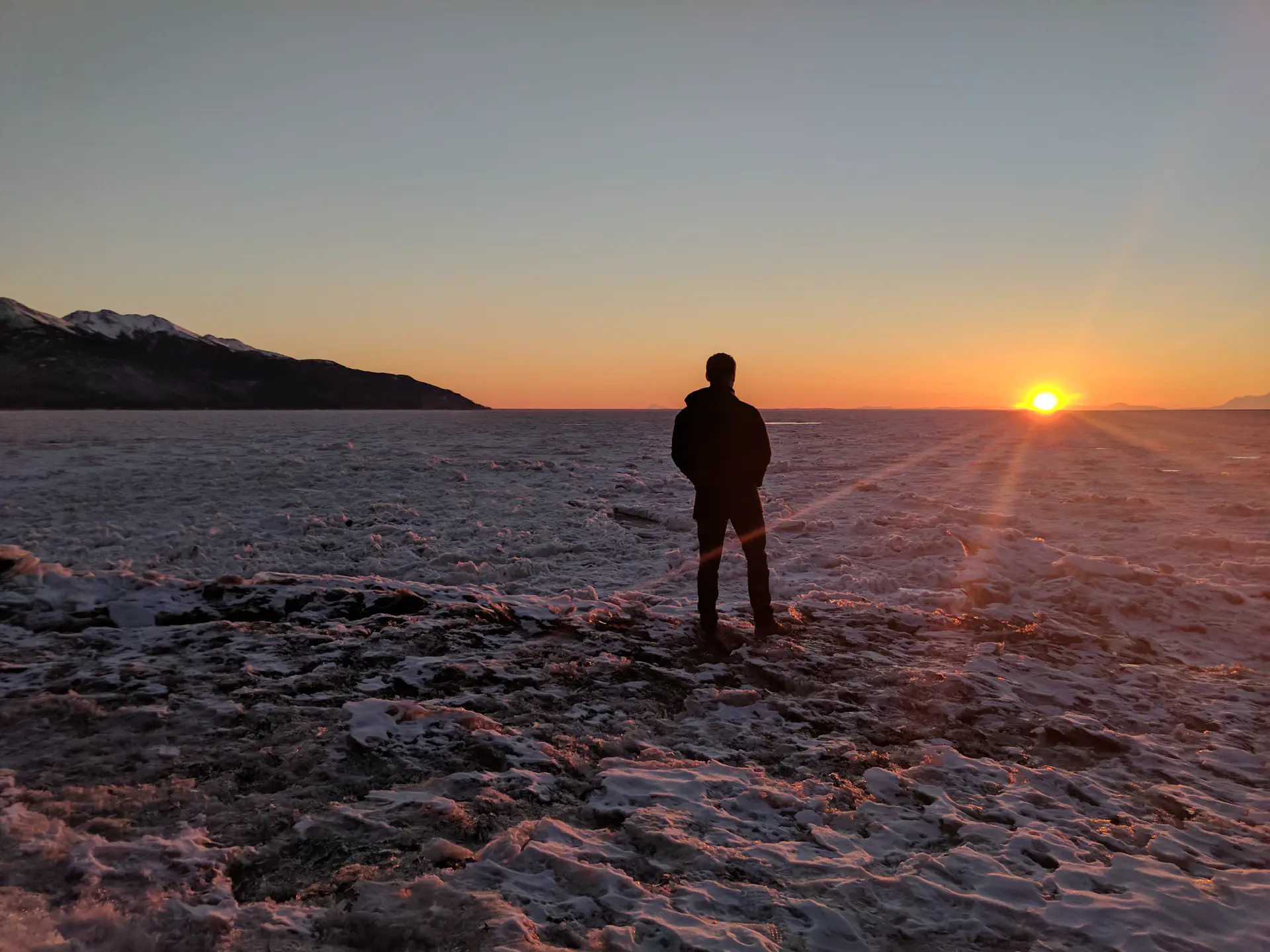 A sunset along the Seward Highway, and the top of Mount Alyeska.