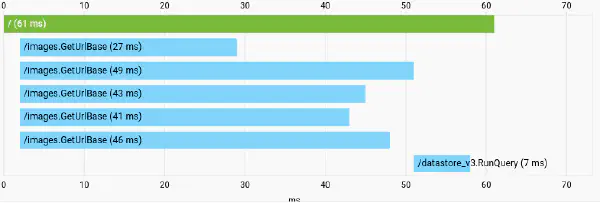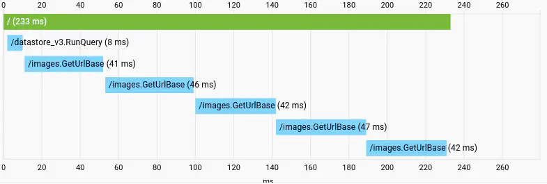 A couple days ago, I stumbled upon the Cloud Trace feature of App Engine. So I turned it on, loaded the main page, and saw the following: